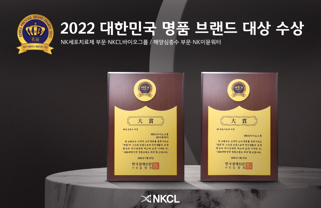 ㈜NKCL바이오그룹(엔케이씨엘바이오그룹)은 ‘2022 명품브랜드대상 시상’에서 ‘2관왕을 차지했다. '2022 명품브랜드대상’은 한국경제신문이 주최하고 산업통상자원부, 한국브랜드경영협회가 후원하는 시상으로 소비자에게 진정한 명품의 가치를 제공하고 브랜드의 이미지 및 제품에 대한 소비자 인식조사를 통해 선정되는...